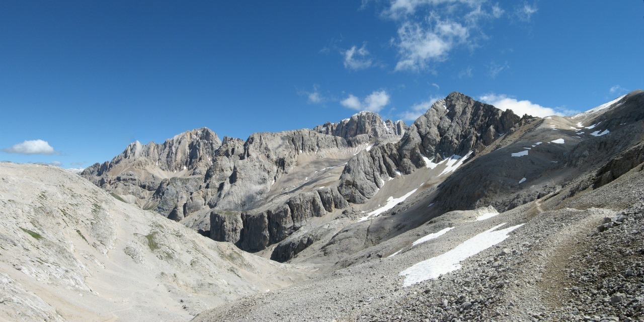 Un’escursione per veri intenditori, a volte basta dar quel poco di impegno fisico in più per ritrovarsi soli in un ambiente decisamente unico nel suo genere. Un invito riservato a quegli amanti della Montagna che, arrivati fin qui con un buon allenamento, abbiano voglia di mettersi in gioco e lasciarsi ammaliare da tanta bellezza. Raggiungeremo i 2931 m di quota di cima Ombrettola, attraverso ghiaioni e pietraie…per cui amanti delle rocce calcaree fatevi avanti!